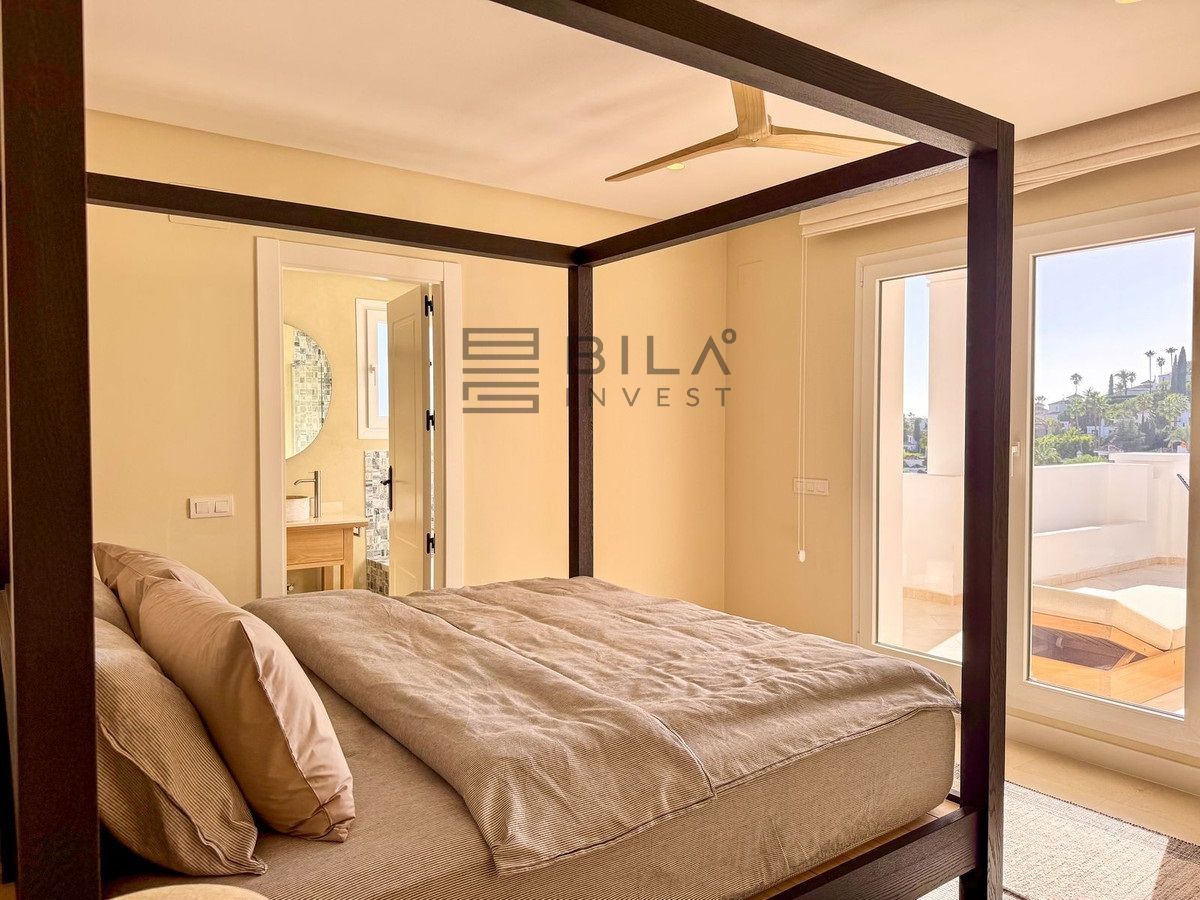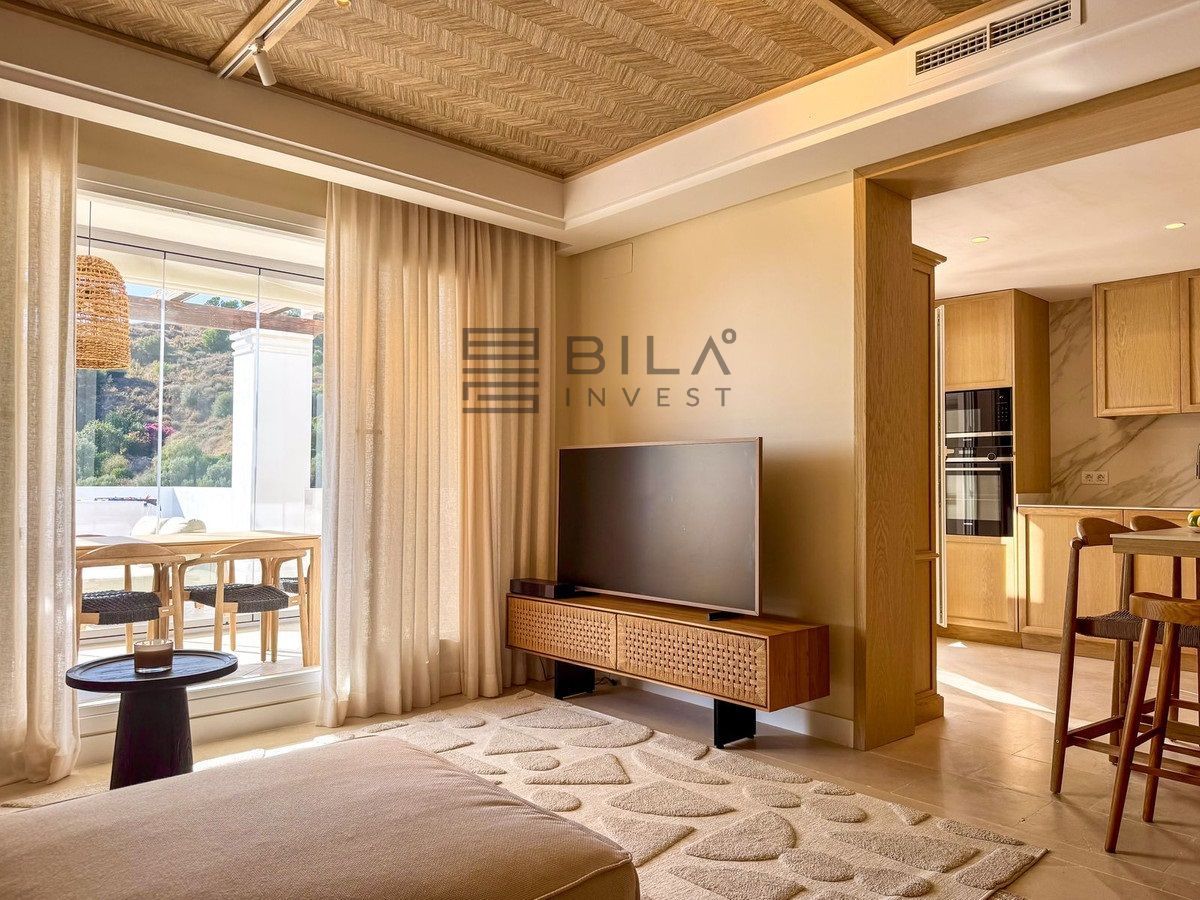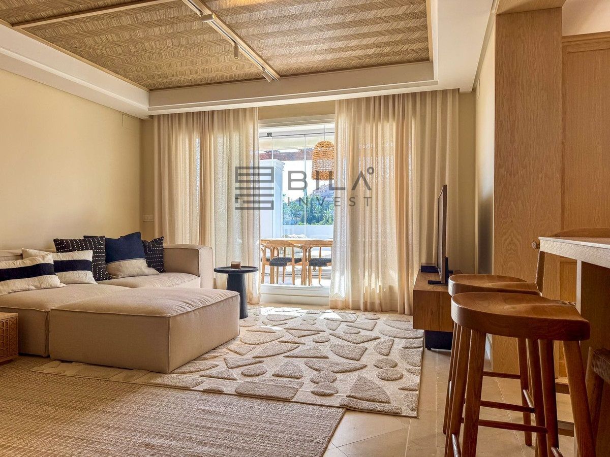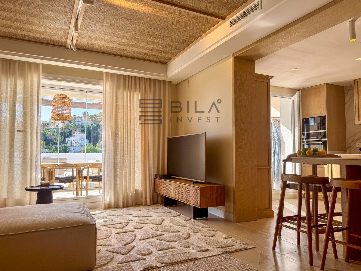 Este impresionante apartamento, recientemente renovado con materiales de alta calidad, se encuentra en una de las zonas más exclusivas de Marbella — Nueva Andalucía, muy cerca de Aloha. Combina un diseño moderno con la esencia del estilo de vida mediterráneo.