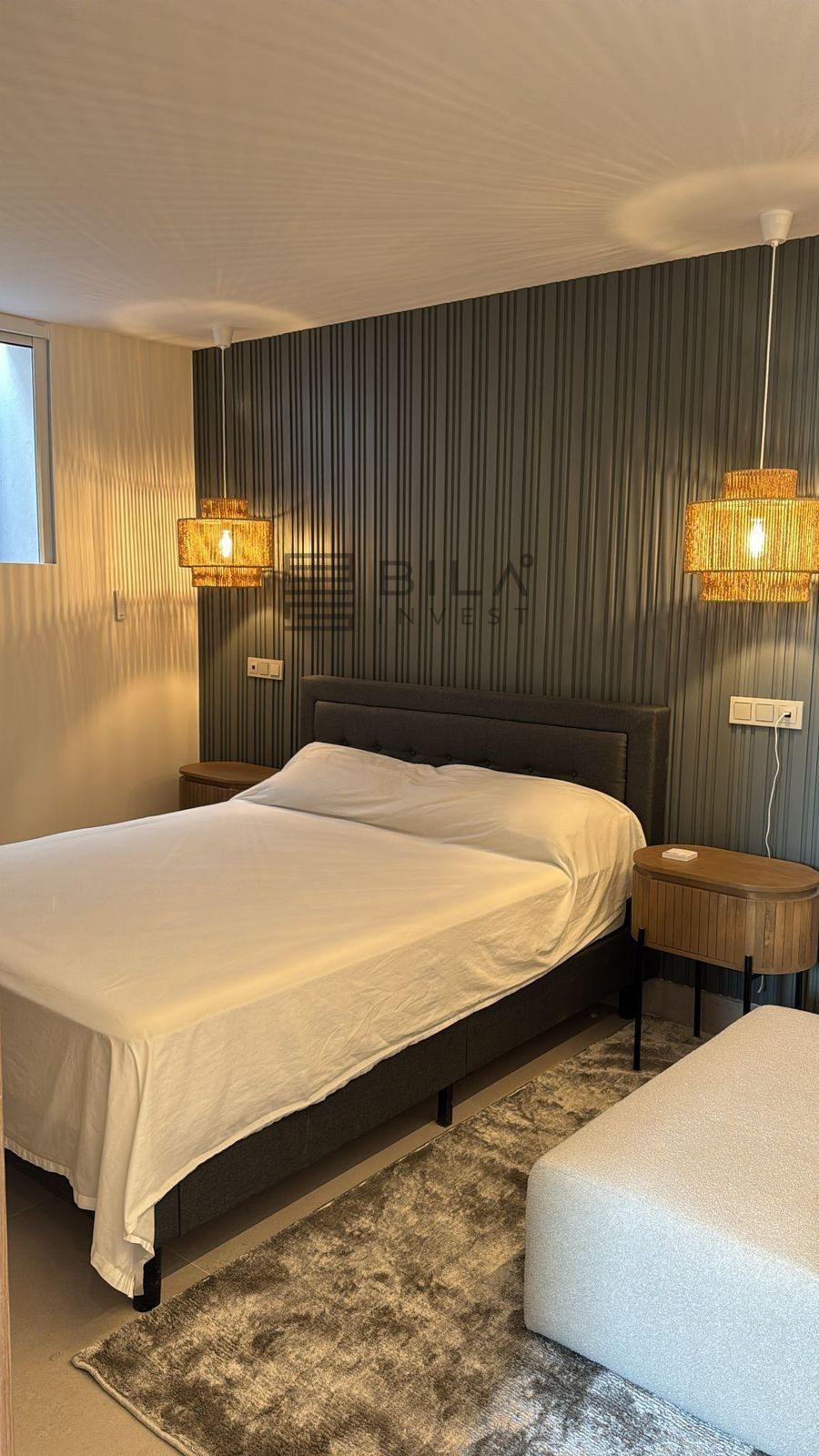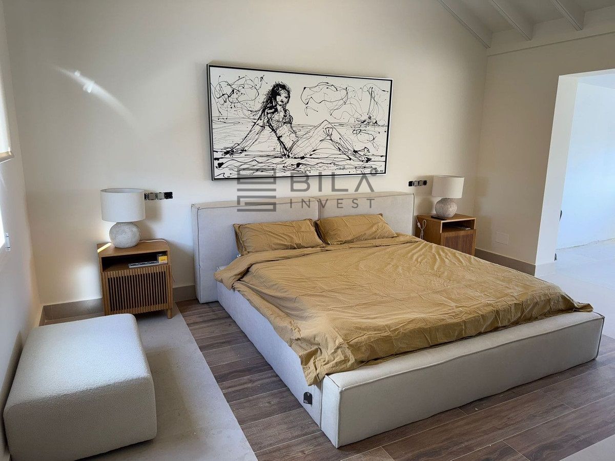 Distribuida en tres niveles, la vivienda ofrece en la planta principal un salón comedor luminoso con vistas de 180 grados, una cocina moderna y acceso directo al jardín y a la piscina privada. En la planta inferior hay dos dormitorios con baño en suite y una segunda sala de estar, mientras que en la planta superior se encuentra la amplia suite principal con vistas espectaculares y un baño generoso.