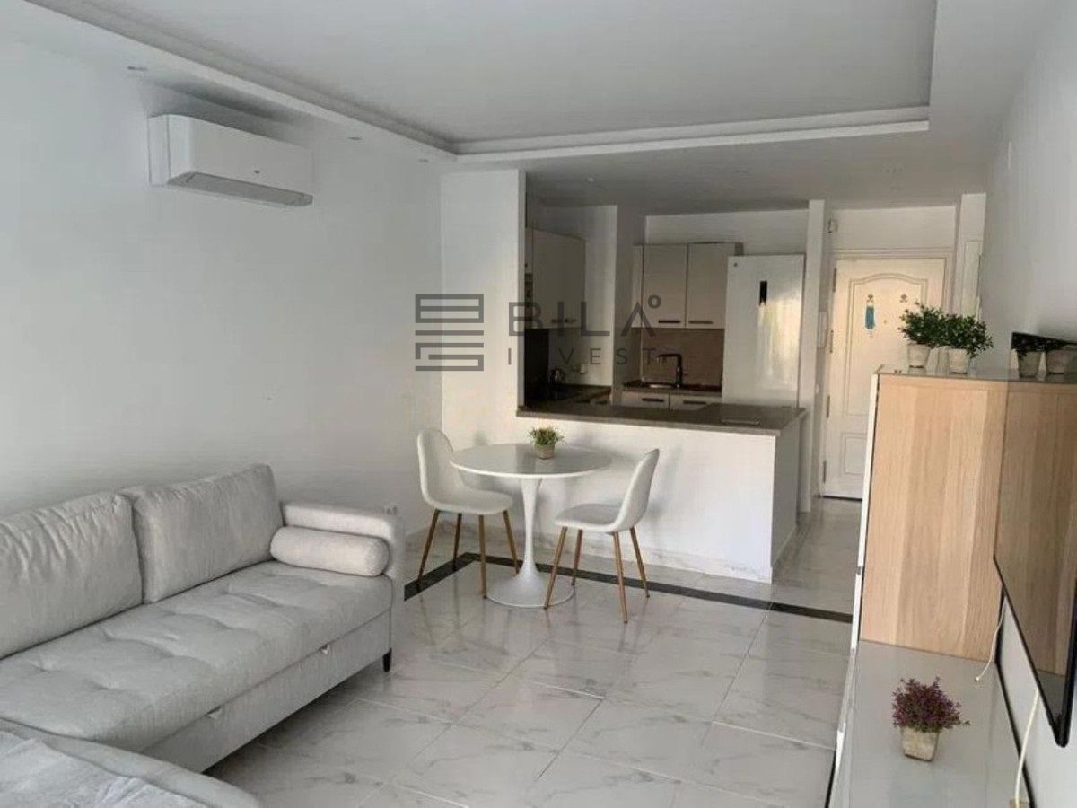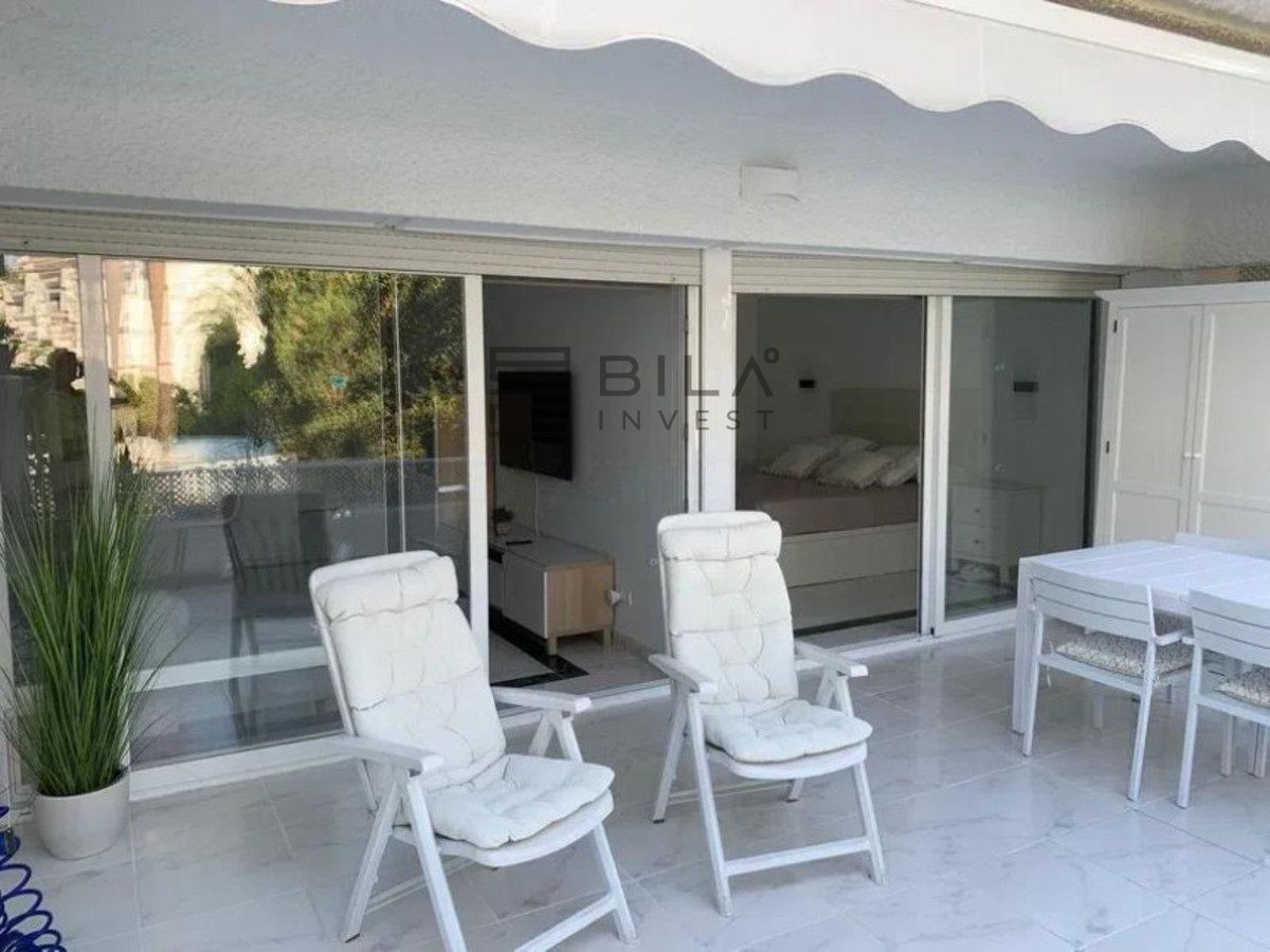 Un dormitorio, un baño A ESTRENAR, cocina americana con mucho espacio para almacenaje, dos armarios empotrados, aire acondicionado frío/calor y radiadores electrónicos. Pintura lisa. Luces indirectas graduables en intensidad y foseado perimetral para crear ambientes. Muy luminoso. Enchufes de diseño camuflados. En la terraza está hecho de obra un cuarto para lavadora y almacenaje. Cuenta con lavadora- secadora. Toldo electrico. El piso tiene 58 metros útiles y la terraza 30 útiles. Termo de agua caliente nuevoa estrenar. No se paga el agua, está incluida en la cuota de la comunidad. Posibilidad de hacer una segunda habitación ya que los metros de la vivienda son muchos. Urbanización tranquila diseñada por el arquitecto Fernando Higueras, con un jardín tropical, con dos piscinas, fuentes, rio artificial con peces, ranas, patos… TIENE ACCESO PEATONAL DIRECTO LA PLAYA, sin necesidad de cruzar carretera, dos duchas para cuando vuelves de la playa quitarte la arena, con acceso directo a la piscina desde la playa.