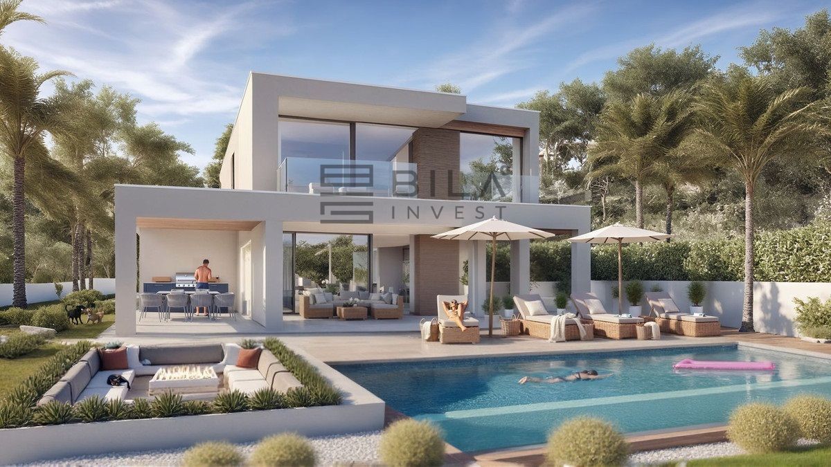 Bienvenido a un hogar donde la elegancia se encuentra con la facilidad diaria: una villa moderna diseñada para elevar tu estilo de vida a través de un diseño cuidadoso, acabados lujosos y una vida interior-exterior sin interrupciones. Extendida en dos amplios niveles, la planta baja se abre a un diseño luminoso y abierto donde las áreas de estar y comedor fluyen sin esfuerzo hacia una cocina de diseño con una generosa isla perfecta tanto para momentos familiares íntimos como para entretenimiento elegante. Un área de lounge chic se conecta directamente a un porche soleado, ideal para reuniones o relajación tranquila en completa privacidad.