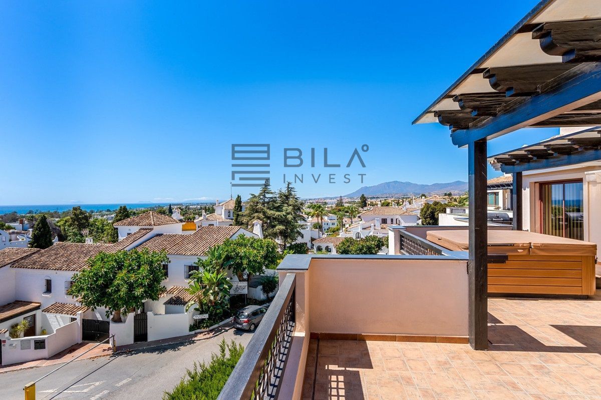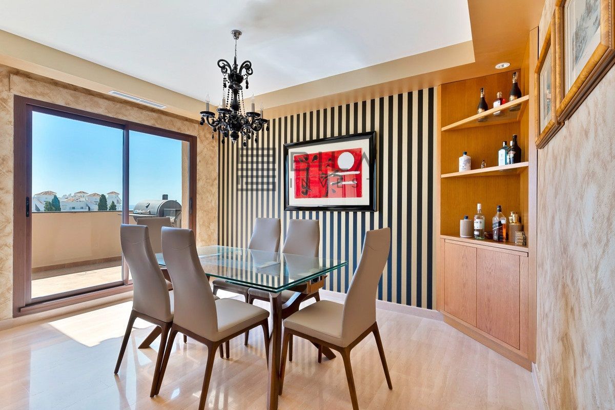 Este prestigioso ático en Medina de Banús, Nueva Andalucía, ofrece una combinación excepcional de lujo, privacidad y vistas panorámicas incomparables. A pesar de su ubicación céntrica, la propiedad brinda una notable sensación de tranquilidad, con impresionantes panorámicas al mar, los jardines y la ciudad, creando una experiencia de vida verdaderamente única.