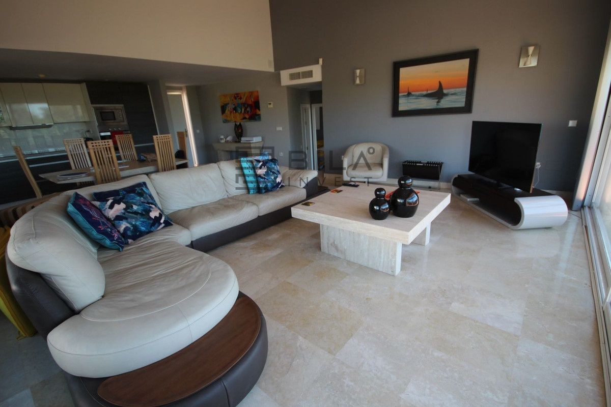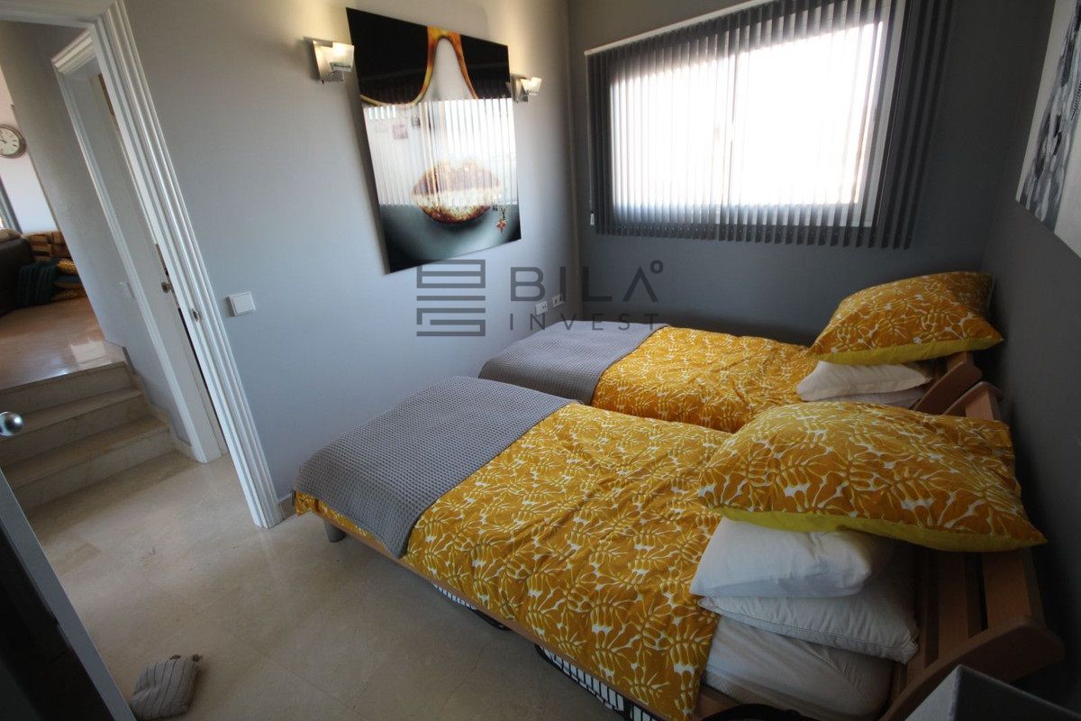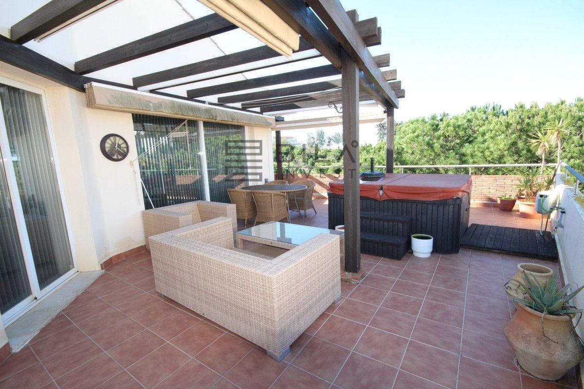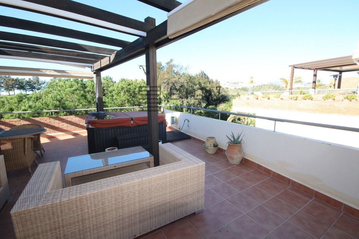 Este luminoso y espacioso ático de lujo de 2 dormitorios, con orientación sur, se encuentra en el exclusivo y cuidado complejo Milenio, en Riviera del Sol, junto a la prestigiosa Casa Club de Golf de Miraflores. La propiedad consta de un amplio salón-comedor, una cocina americana totalmente equipada, 2 dormitorios dobles, 2 baños (uno en suite) y una gran terraza envolvente con preciosas vistas al campo de golf, las montañas, el mar y los jardines comunitarios. El salón cuenta con preciosos ventanales de suelo a techo en dos lados y el dormitorio principal cuenta con amplios armarios empotrados con espejo, así como puertas que dan a la terraza. Este apartamento cuenta con acabados de alta calidad, con suelos de mármol, baño de mármol completamente alicatado, aire acondicionado (frío y caliente), videoportero, TV vía satélite, alarma, etc. Este tranquilo complejo cuenta con hermosos jardines tropicales muy bien cuidados, que incluyen un estanque. También cuenta con una gran piscina con zona de bar, piscina infantil independiente, gimnasio y sauna. El apartamento incluye plaza de aparcamiento subterráneo y trastero. 25 minutos aeropuerto de Málaga, 10 minutos Fuengirola y 10 minutos Marbella.
