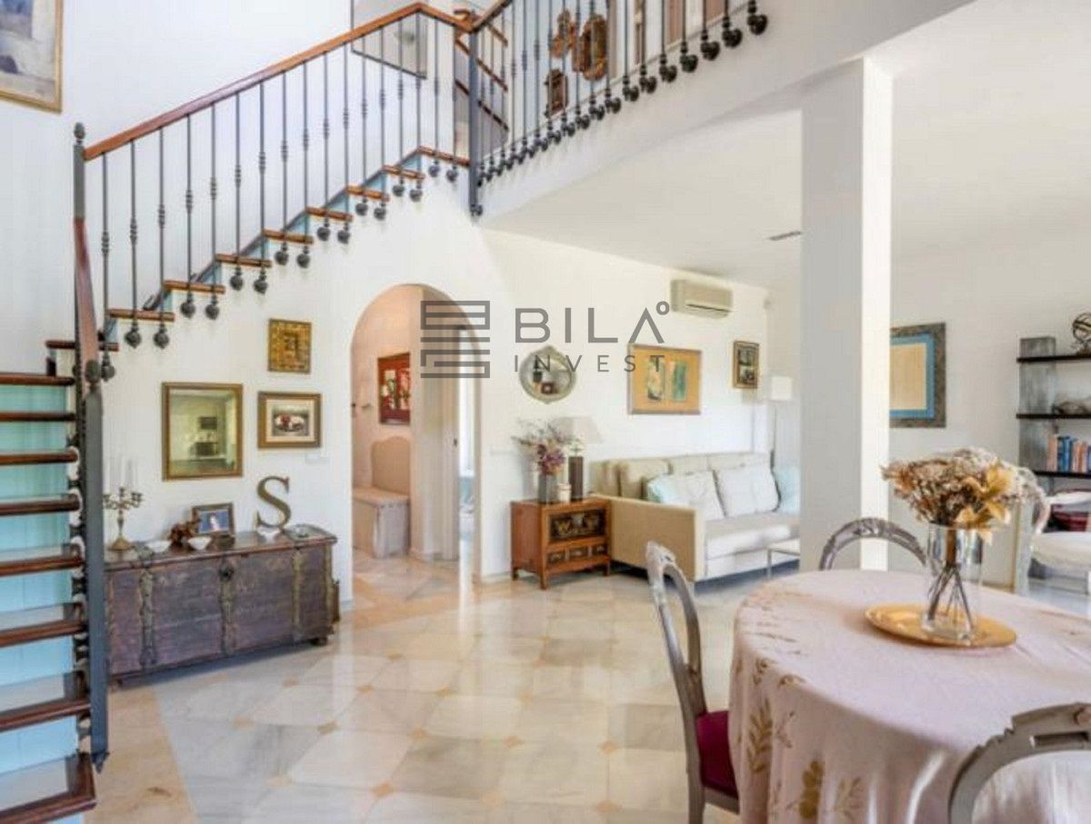 Una bonita escalera conduce a la planta superior, donde se ubican dos dormitorios adicionales, ambos con baño en suite. El dormitorio principal cuenta además con una terraza abierta con agradables vistas, perfecta para relajarse.